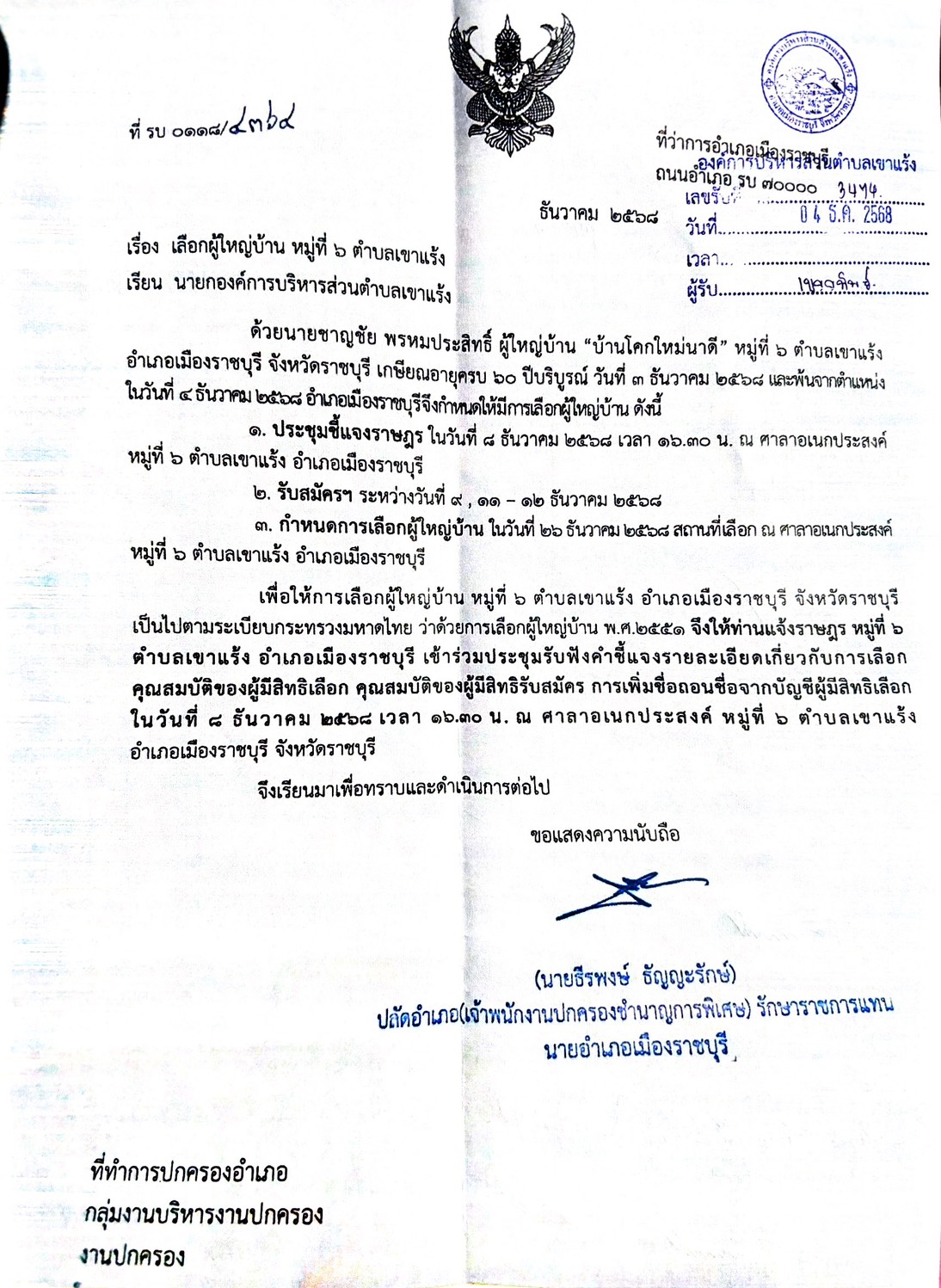 ในวันที่ 8 ธันวาคม 2568 เวลา 16.30 น. ณ ศาลาอเนกประสงค์ หมู่ที่ 6 ตำบลเขาแร้ง อำเภอเมืองราชบุรี จังหวัดราชบุรี